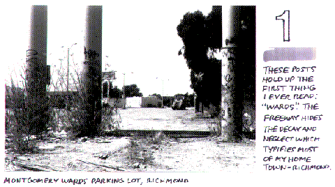 1) These posts hold up the first thing I ever read: "Wards." The freeway hides the decay and neglect which typifies most of my home town - Richmond